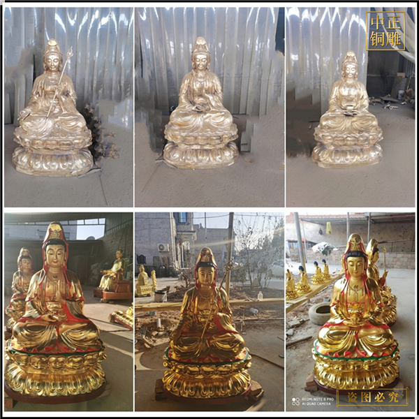 中正銅雕-貼金彩繪觀音菩薩銅像、貼金彩繪觀音菩薩銅像價格、貼金彩繪觀音菩薩銅像廠家,我公司集科研、開發設計、普通鑄造、一次性整體澆鑄、精密鑄造于一體。本公司技術力量雄厚,設備,不但重視中國青銅器原有的藝術風格,還繼承了文物原有的藝術品味,在繼承和發揚古老文化的同時,更深一步為新老客戶定身量制各種銅制、鐵制工藝品等產品,曾多次受到寺廟長老和美術學院教授的好評。