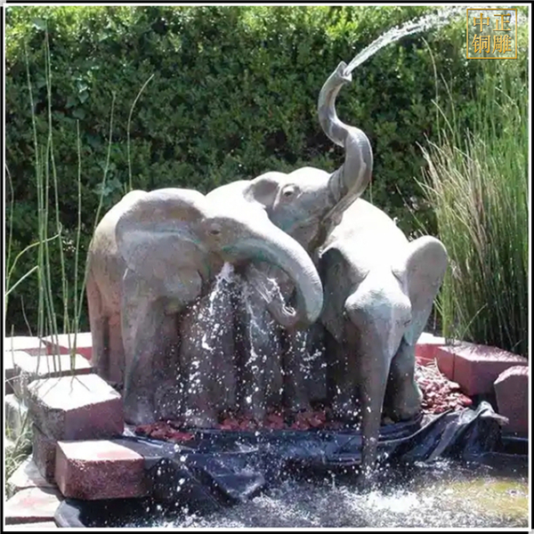 銅大象玩水景觀(guān)雕塑