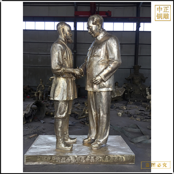 中正銅雕-名人握手銅雕塑 大型名人握手銅雕塑廠家 名人握手銅雕塑擺件制作,我公司集科研、開發設計、普通鑄造、一次性整體澆鑄、精密鑄造于一體。本公司技術力量雄厚,設備,不但重視中國青銅器原有的藝術風格,還繼承了文物原有的藝術品味,在繼承和發揚古老文化的同時,更深一步為新老客戶定身量制各種銅制、鐵制工藝品等產品。